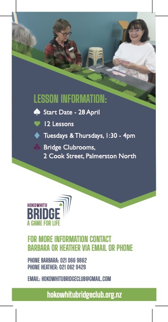 Hokowhitu Bridge Club Beginner Lessons 2026